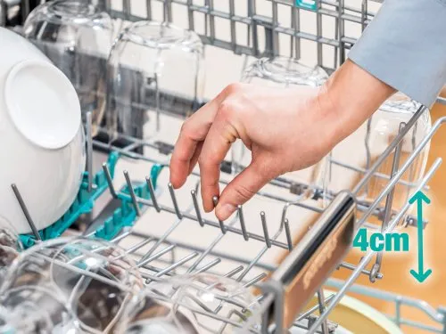 A system of 3 baskets gives you incredible adaptability for all your needs. The middle basket is equipped with ball bearings for the quietest and smoothest movement you will ever experience. Adjustable height of the middle basket for 4cm with adjustable basket for cutlery enables you to insert and wash various sizes and shapes of dishes. This 3 baskets system enables you washing up to 16 place settings at a time.