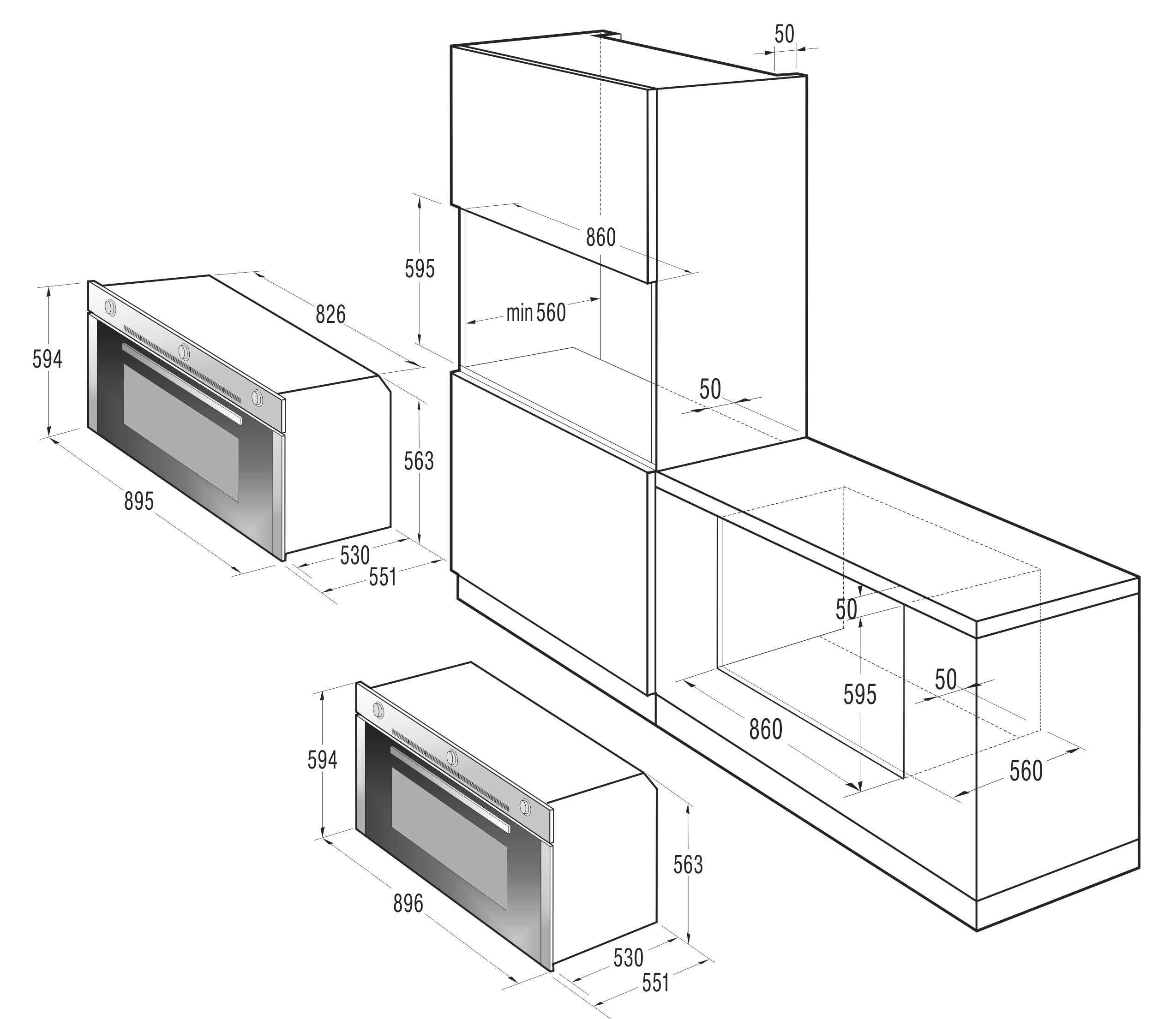 Touch control electronic programming timer | Built-in single oven | Dimensions (W×H×D): 89.5 × 59.4 × 55.1 cm